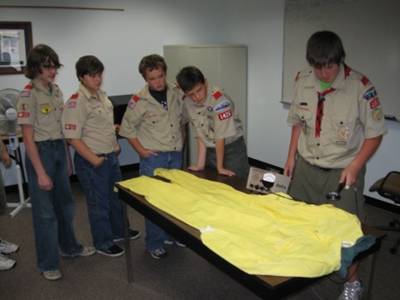 Jerry explained some of the basic requirements that are required of a Nuclear Power facility and how the personnel work to make sure everyone is kept safe. We were even allowed to check a yellow suit for possible contamination sources which the suit is intended to keep from getting to a person. I checked clean, the Scouts made sure of it! |
